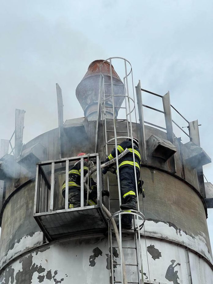 În urma incendiului au ars doi metri cubi rumeguș, saci de filtrare din interiorul silozului și două motoare scuturare saci.