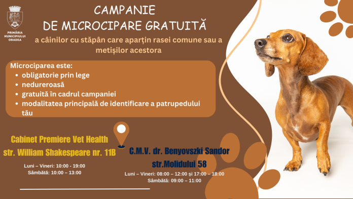Îți reamintim însă că acum ai șansa să îi pui microcip gratuit patrupedului tău, în cadrul campaniei derulată de Primăria Oradea, campanie care a debutat încă de la începutul lunii octombrie.
