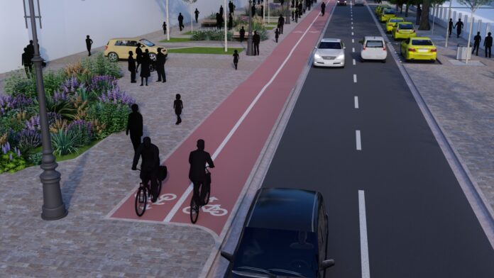 – realizarea unei piste de biciclete de-a lungul străzii;
