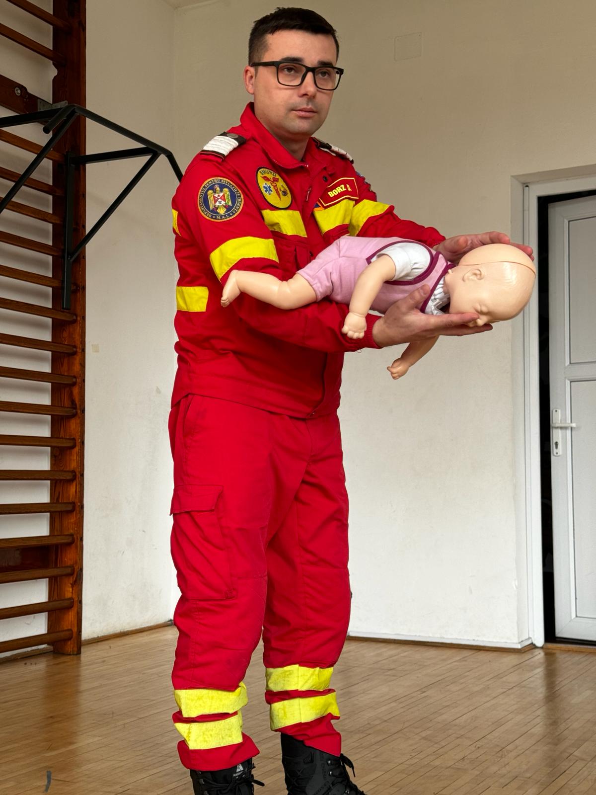În cadrul sesiunii de pregătire, căpitan Tomșe Călin și plutonier adjutant Borz Darius, formatori în cadrul C.F.P.D.A.M.U., i-au familiarizat pe profesori cu noțiunile de bază în acordarea primului ajutor, explicându-le teoretic și exemplificându-le practic, modul în care se realizează dezobstrucția căilor aeriene și suportul vital de bază, ambele atât la atât adulți, cât și la copii.