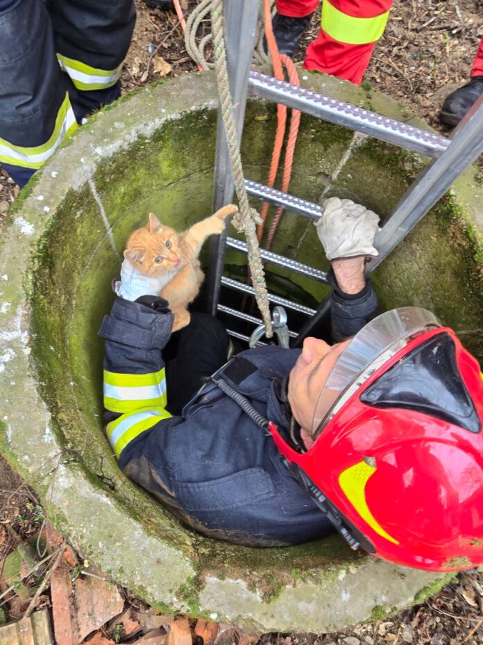 Utilizând scara culisabilă din dotarea autospecialei de intervenție, unul dintre membrii echipajului de pompieri a coborât în puțul adânc de aproximativ 10 metri, evacuând cu grijă, puiul de pisică, care era teafăr, dar speriat și deshidratat, proprietara observându-i lipsa din după-amiaza zilei precedente.