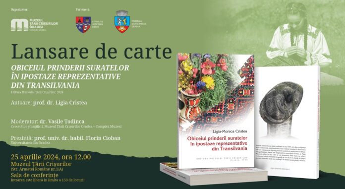 Muzeul Țării Crișurilor Oradea – Complex Muzeal organizează, în parteneriat cu Consiliul Județean Bihor și Primăria Municipiului Oradea, lansarea cărții Obiceiul prinderii suratelor în ipostaze reprezentative din Transilvania, apărută la Editura Muzeului Țării Crișurilor, Oradea, 2024, autor dr. Ligia Cristea. Evenimentul va avea loc în 25 aprilie a.c., ora 12.00, la Muzeul Țării Crișurilor (Str. Armatei Române nr. 1/A).