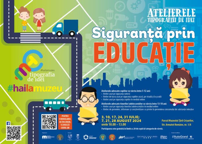 Muzeul Țării Crișurilor Oradea – Complex Muzeal și Inspectoratul de Poliție Județean Bihor, Compartimentul de Analiză și Prevenire a Criminalității, în parteneriat cu Consiliul Județean Bihor, Primăria Municipiului Oradea, Visit Oradea, Jandarmeria Română – Inspectoratul de Jandarmi Județean „Gl. bg. Anton Berlescu” Bihor, Inspectoratul pentru Situații de Urgență „Crișana” al Județului Bihor, Biblioteca Județeană „Gheorghe Șincai” Bihor, Hotel Continental Forum Oradea, Asociația „Prietenii Muzeului Țării Crișurilor” și Autogrand Oradea, Skoda România (Partener de mobilitate), organizează în cadrul evenimentului cultural estival Tipografia de idei | #hailamuzeu, ediția a II-a, o serie de ateliere dedicate prevenției și siguranței atât în viața de zi cu zi, cât și în mediul online. Acestea vor avea loc în parcul Muzeului Țării Crișurilor (Str. Armatei Române nr.1/A), în fiecare zi de miercuri din lunile iulie-august a.c., între orele 10.00-13.00, cu excepția zilei de 14 august.