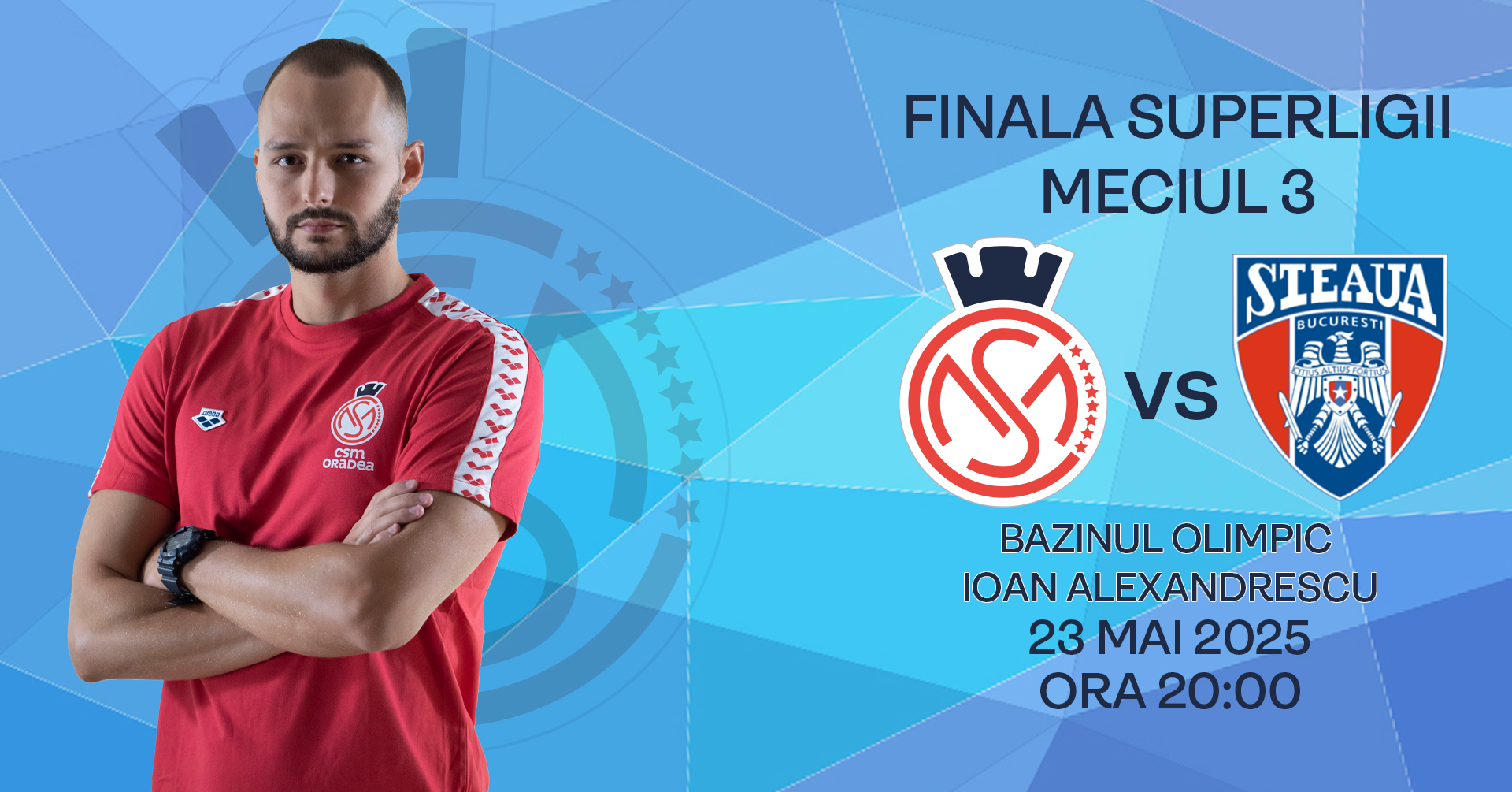 Echipa de polo pe apă CSM Oradea continuă finala Superligii Naționale – ediția 2024/25 în propriul bazin. După 1-1 în primele două jocuri cu Steaua București, în capitala țării, seria se mută la bazinul olimpic Ioan Alexandrescu.