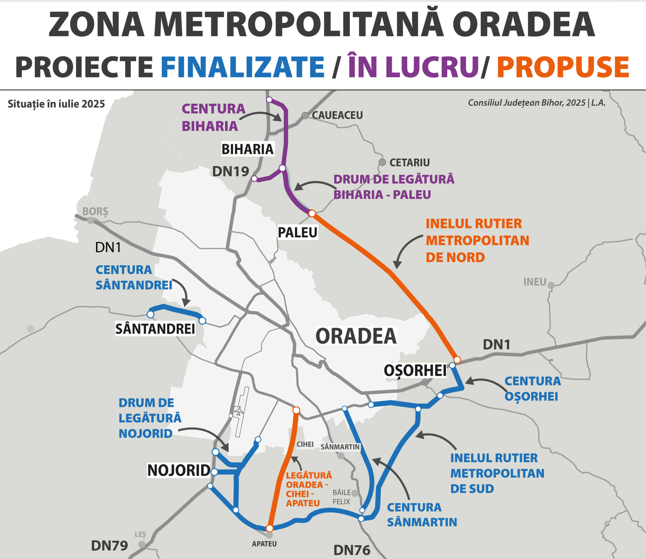 Pentru realizarea acestui proiect, Consiliul Județean Bihor a încheiat un parteneriat cu Compania Națională de Administrare a Infrastructurii Rutiere (CNAIR). Noul drum ar urma să lege comunele Oșorhei și Biharia, respectiv DN 1 și DN 19.
