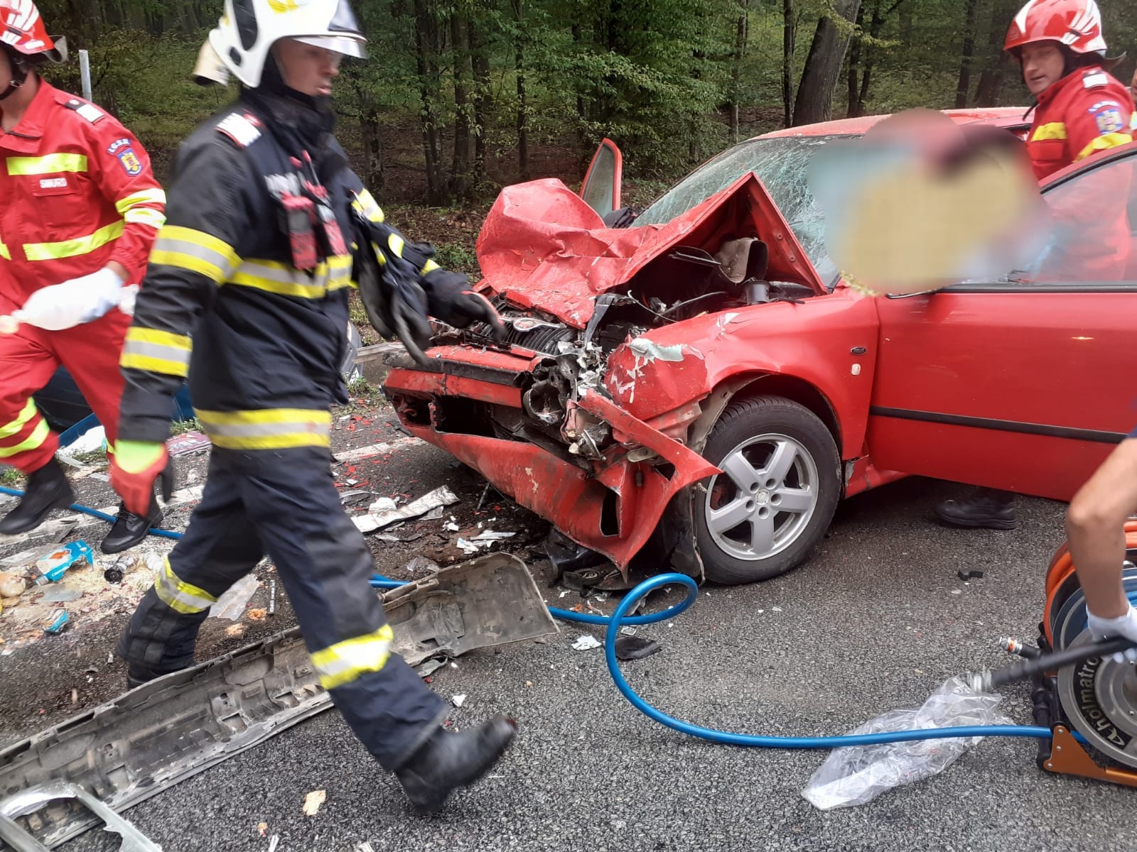 Când a ajuns la locul accidentului, colegii de la Secția de Pompieri Beiuș se aflau deja în intervenție. În doar câteva momente, Adrian – pompier cu peste un deceniu de experiență, inclusiv pe linia SMURD – s-a alăturat echipelor de salvare, intervenind alături de camarazi pentru evacuarea celei de-a doua victime încarcerate și oferind suport echipajelor medicale și paramedicale în asistarea persoanelor rănite.