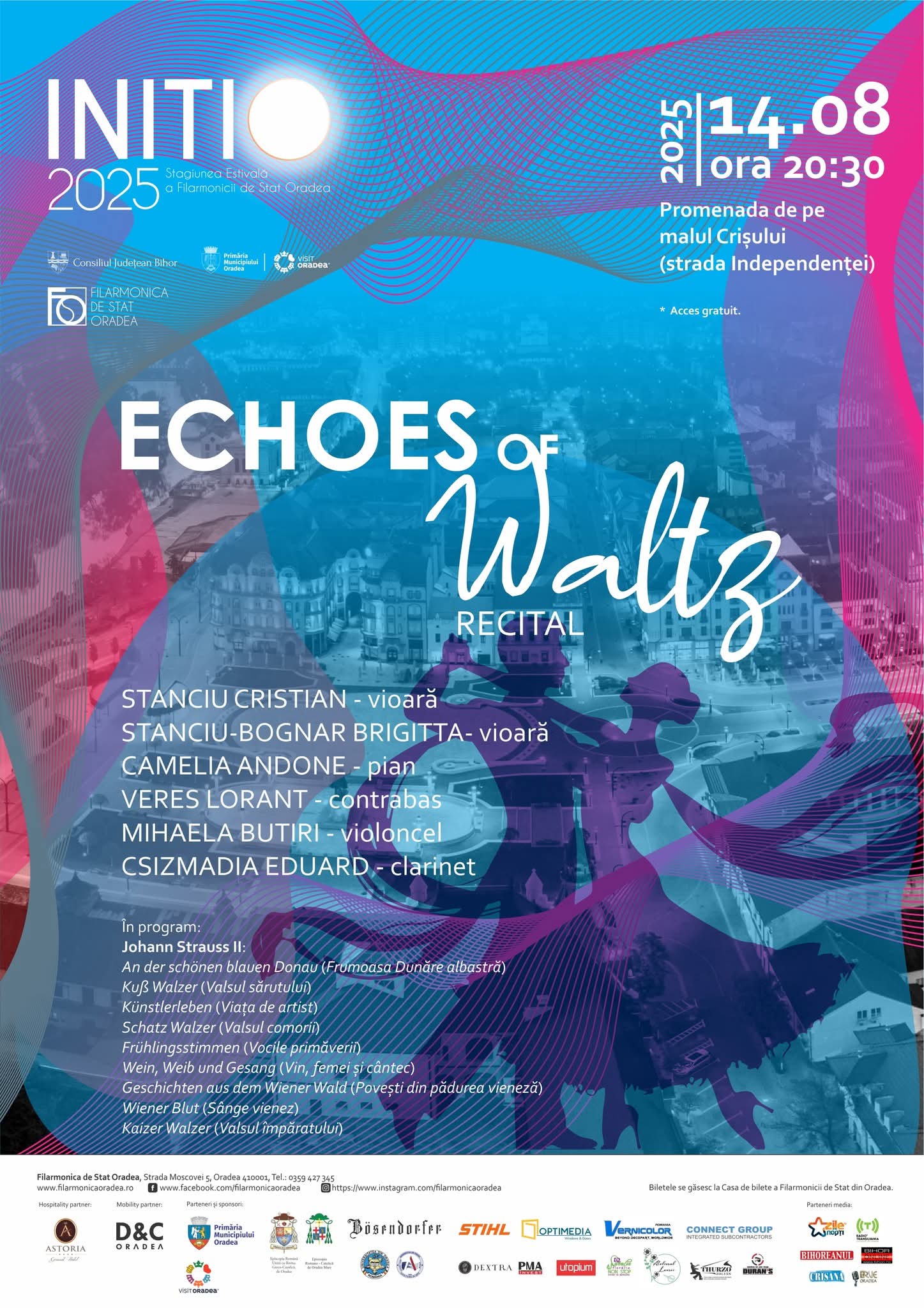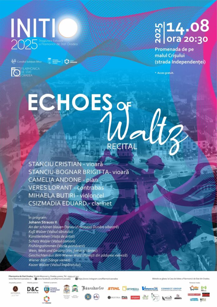 Pe Promenada de pe malul Crișului Repede, va avea loc un recital clasic intitulat „Echoes of a Waltz” în data de 14 august, ora 20:30.