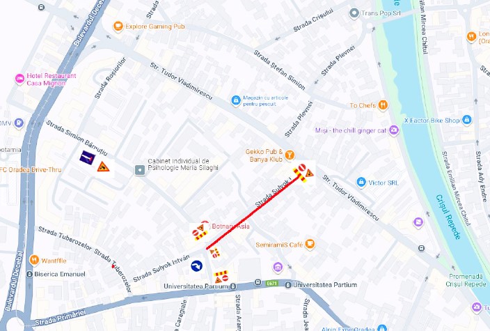 Primăria Oradea anunță că, începând de joi, 4 septembrie 2025, ora 8:30 până vineri, 5 septembrie 2025, ora 19:00 se va închide circulația pe strada Sulyok Istvan, pe tronsonul cuprins între străzile Tudor Vladimirescu și Simion Bărnuțiu.