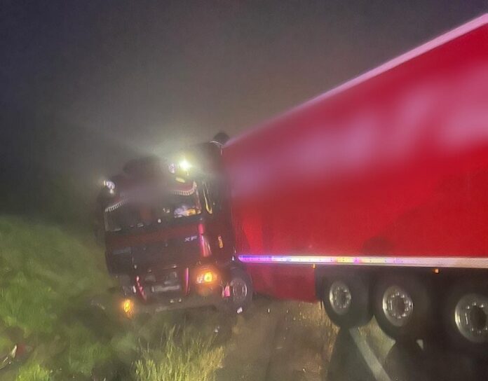 Circulația rutieră se desfășoară alternativ, din cauza unui autotren care a pierdut controlul direcției și a blocat sensul de mers către Cluj. Nicio persoană nu a fost rănită.