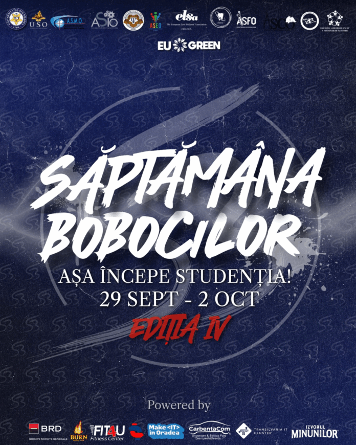 Săptămâna Bobocilor revine cu o nouă ediție, pregătită să ofere noilor studenți ai Universității din Oradea o experiență unică, plină de energie și oportunități de socializare. Evenimentul, ajuns la a 4-a ediție, s-a consacrat deja ca un punct de reper pentru integrarea bobocilor în comunitatea academică și în viața de student. Pe parcursul a patru zile, între 29 septembrie – 2 octombrie, participanții vor avea parte de activități diverse și atractive: de la orientare în campus și prezentarea asociațiilor studențești, la un treasure hunt prin oraș, competiții interactive, și, bineînțeles, petreceri studențești care promit atmosferă memorabilă.
