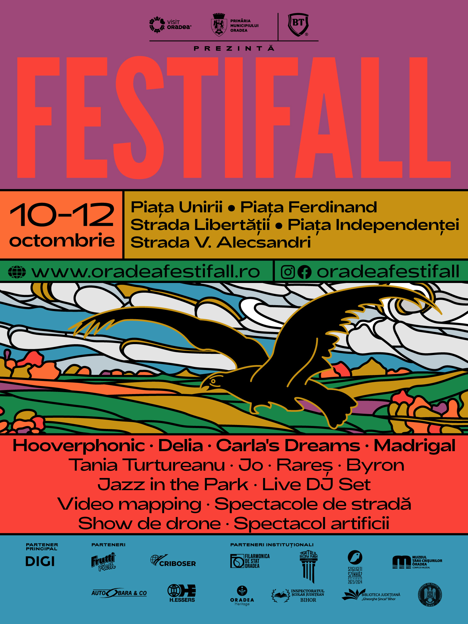 Cel mai așteptat festival al toamnei revine în perioada 10-12 octombrie, cu trei zile pline de muzică, artă și experiențe spectaculoase, care vor transforma Oradea într-o scenă vie, animată de energie și culoare.