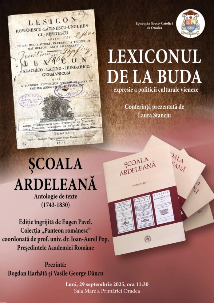Luni, 29 septembrie 2025, ora 11:30, în Sala Mare a Primăriei Oradea va avea loc conferința „Lexiconul de la Buda – expresie a politicii culturale vieneze”, susținută de dr. Laura Stanciu. Evenimentul marchează 200 de ani de la apariția primului dicționar românesc modern – o lucrare de temelie a lexicografiei românești și totodată un instrument științific și manifest politico-cultural al Școlii Ardelene.