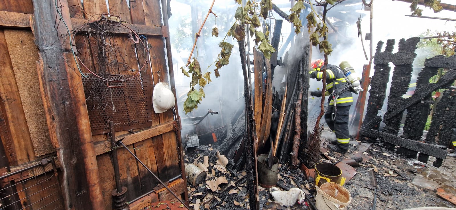 Ajunse la adresa indicată de apelant, forțele de intervenție au constatat că ardea violent și generalizat o anexă din lemn, lipită de un hambar, existând riscul propagării incendiului la casa din cadrul gospodăriei, precum și la locuința învecinată, situată la circa trei metri de focare.