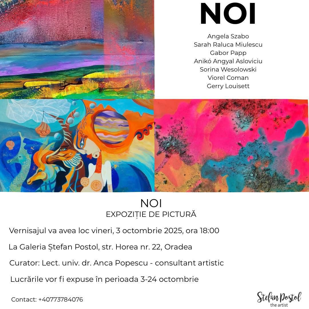 Vernisajul va avea loc vineri, 3 octombrie 2025, la ora 18:00, la Galeria Ștefan Postol din Oradea, str. Horea nr. 22.