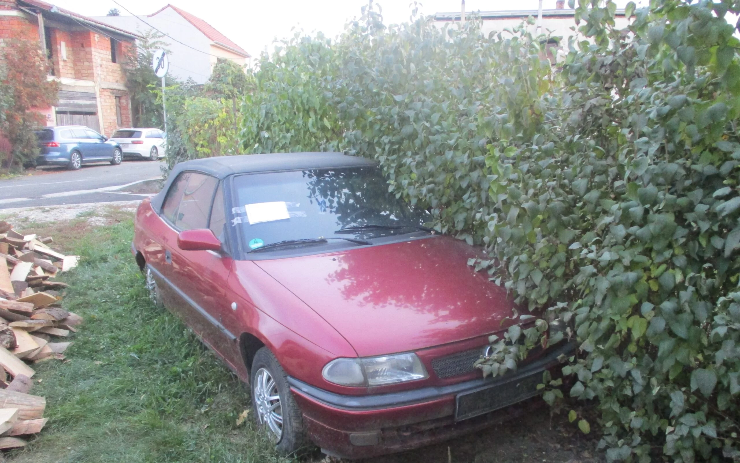 Autovehicul marca Opel, de culoare vișinie, fără număr de înmatriculare, aflat pe str. Oituz nr. 22.