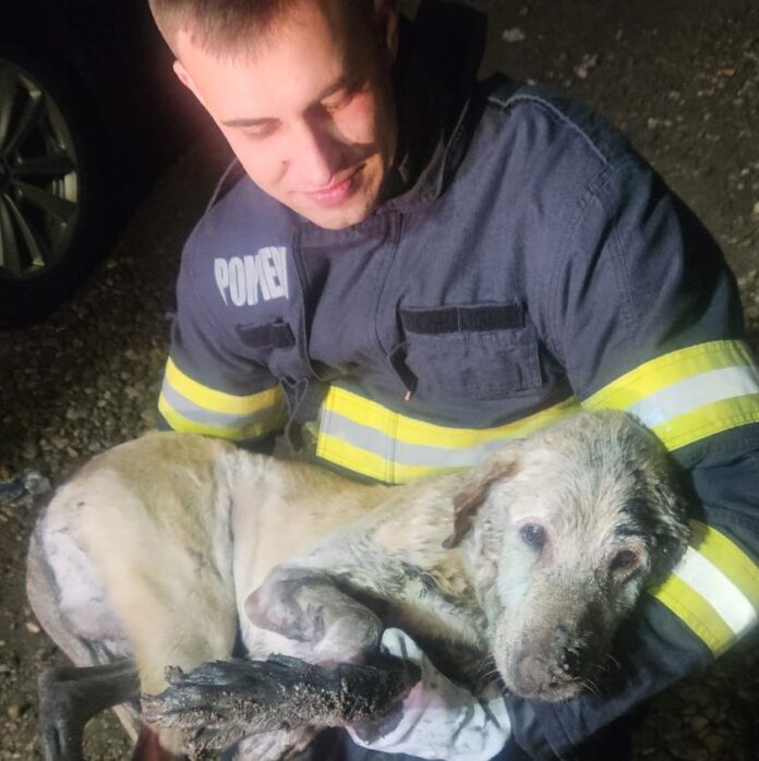 Folosind accesorii specifice unor astfel de intervenții, pompierii au evacuat în siguranță, câinele, care, deși era speriat, epuizat și hipotermic, nu prezenta răni vizibile.