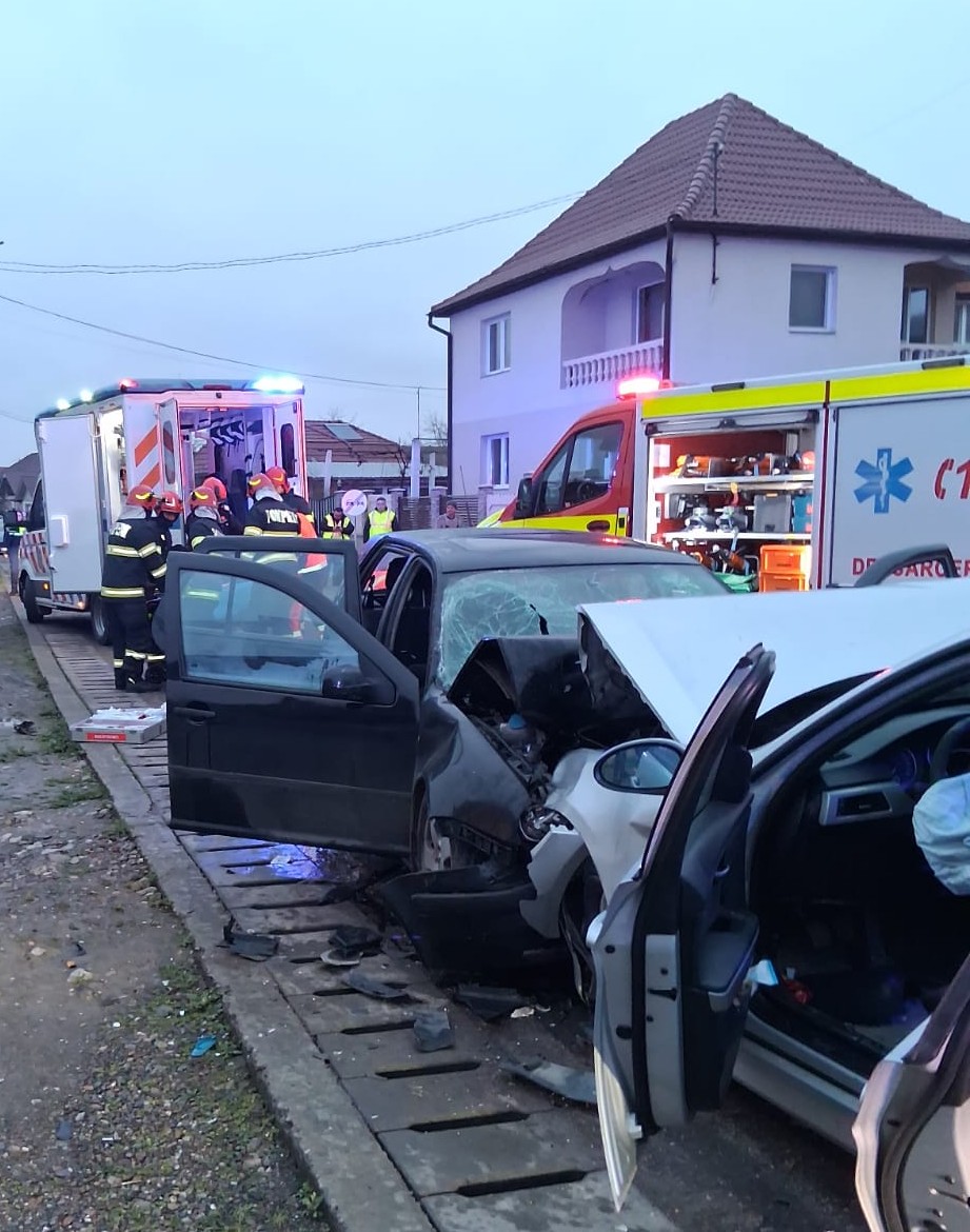 Din primele investigații efectuate de polițiști, la fața locului, s-a constatat că în accident au fost implicate două autoturisme.