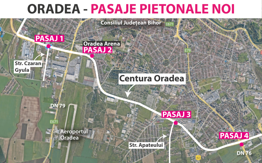 Consiliul Județean Bihor a finalizat procedura de licitație pentru execuția lucrărilor la 4 pasaje pietonale subterane de pe Centura Oradea. Aceste proiecte vor contribui la creșterea siguranței pietonilor și la fluidizarea traficului în cele mai aglomerate zone.
