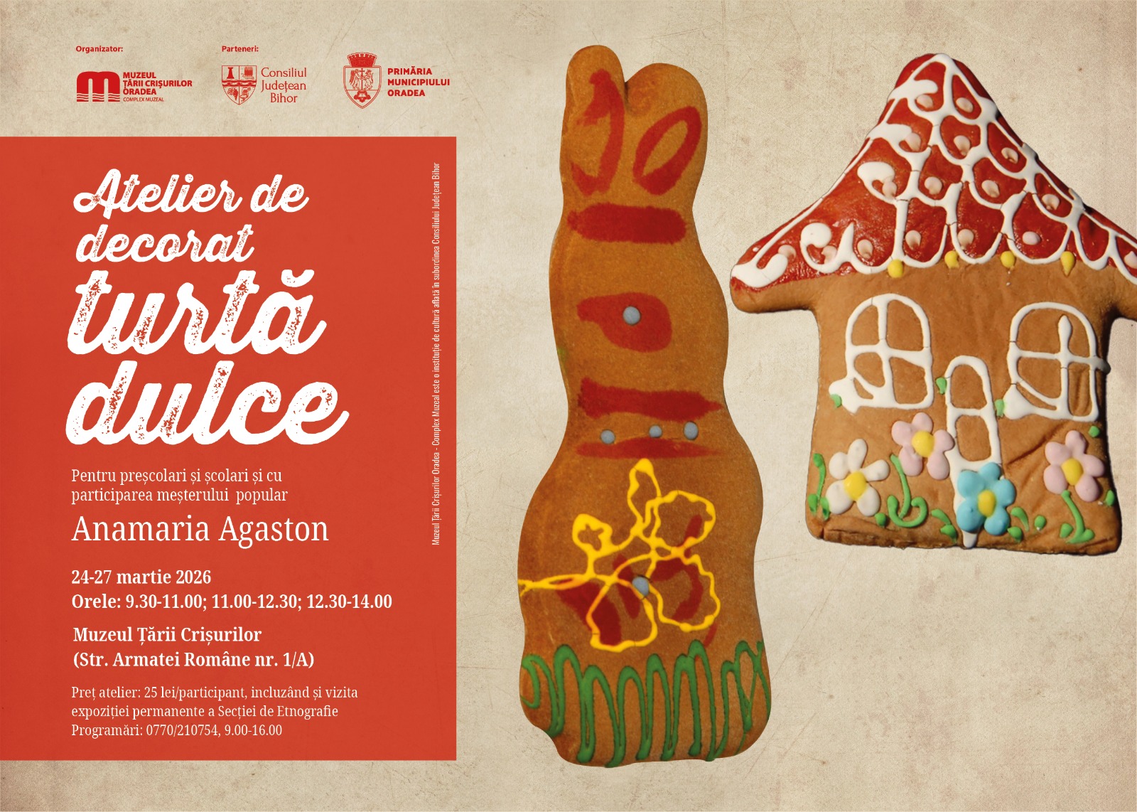 Cu ocazia sărbătorilor pascale, Muzeul Țării Crișurilor Oradea – Complex Muzeal organizează, în parteneriat cu Consiliul Județean Bihor și Primăria Municipiului Oradea, ateliere de decorat turtă dulce.