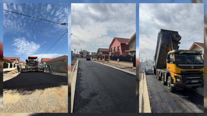 Se toarnă primul strat de asfalt pe strada Bajor Andor din cartierul Oncea