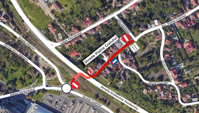 Astfel, circulația rutieră va fi închisă pe strada Piatra Craiului, pe tronsonul cuprins între sensul giratoriu de la intersecția străzii Codrilor cu Aleea Ștrandului și intersecția cu Calea Adevărului, în perioada 27 martie 2026, ora 09:00 – 28 martie 2026, ora 17:00. În acest interval vor avea loc lucrări de montare a grinzilor pasajului.