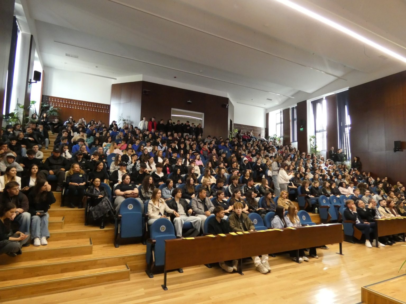 Aula Magna a Universității din Oradea a fost, luni – 27 aprilie 2026, mult prea mică pentru sutele de elevi din oraș și nu numai veniți să ia parte la prima zi de evenimente din seria celor programate de-a lungul „Săptămânii Studenților Universității din Oradea”.